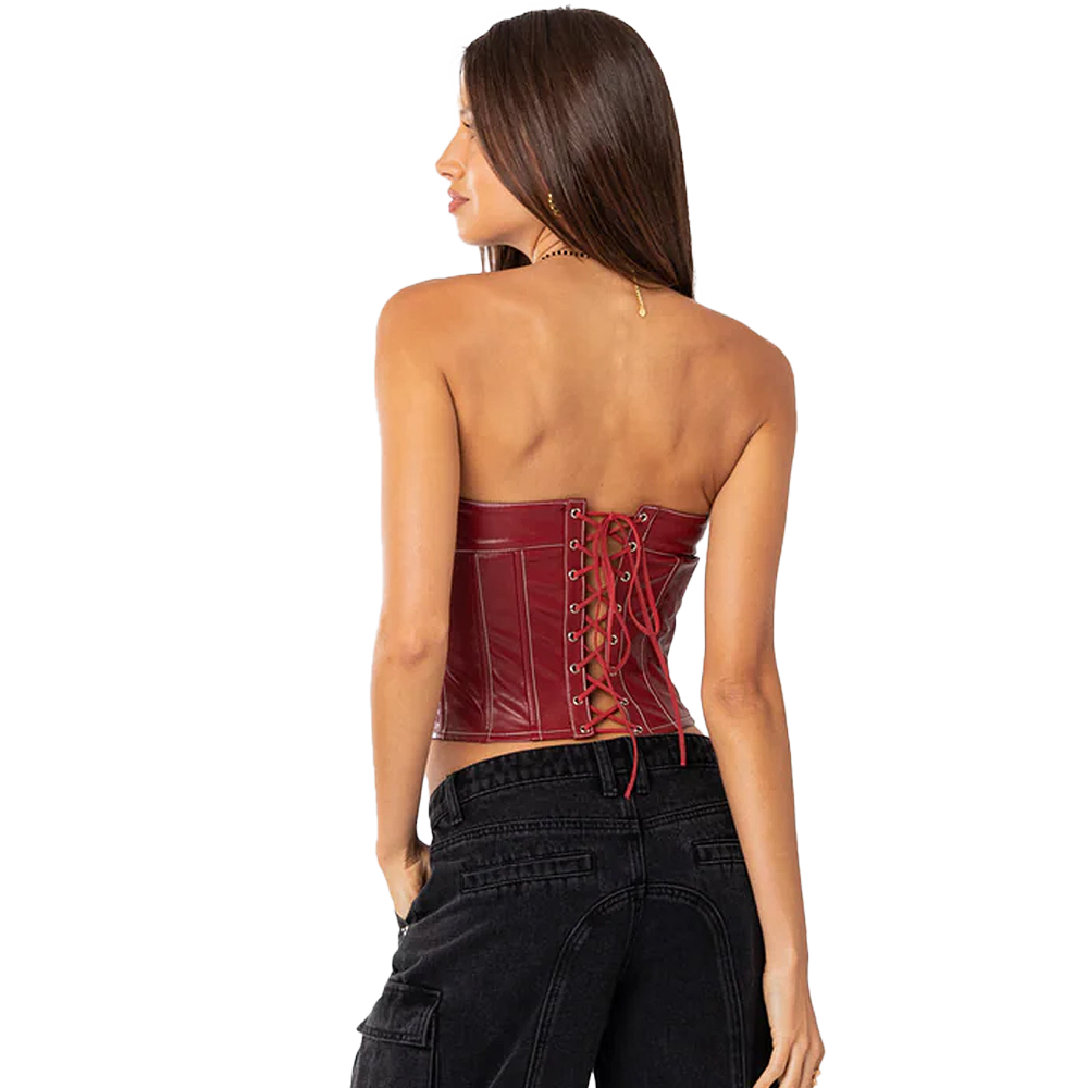 מחוך דמוי עור בצבע אדום, עוצב בקפידה ויושב בצורה מאוד נוחה על הגוף.