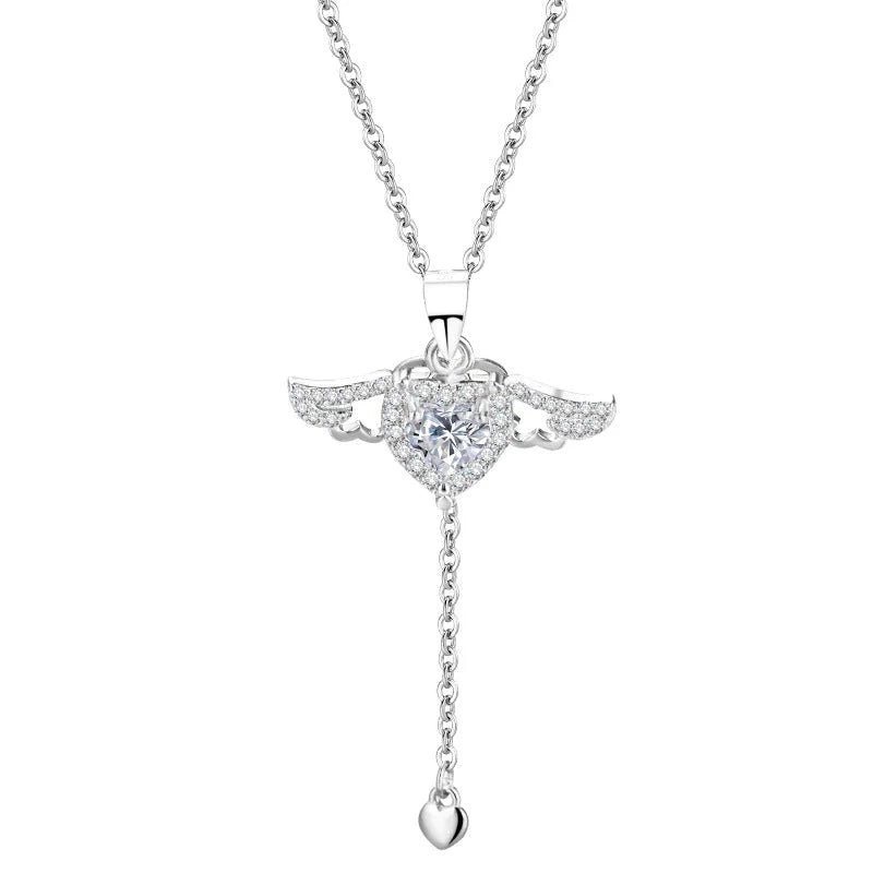 תיליון השרשרת נוצר בהשראת לב נוצץ וכנפי מלאך עם זרקונים יוקרתיים